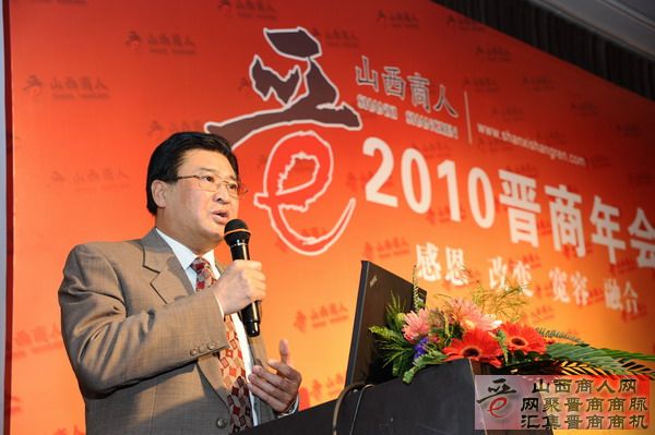 在此我仅以个人的名义,代表中国信息协会,民营企业分会对2010年的晋商年会暨晋商品牌发展的高端论坛交流会,在北京的胜利召开,表示衷心的祝贺。我本人在山西生活了17年,也就是说从1969年1月1号到1986年的10月1号,这一段时间,我作为山西成长的一个干部,在山西生活了17年。对山西留下了深刻的印象。现在,山西给我的回忆,那是无限美好。