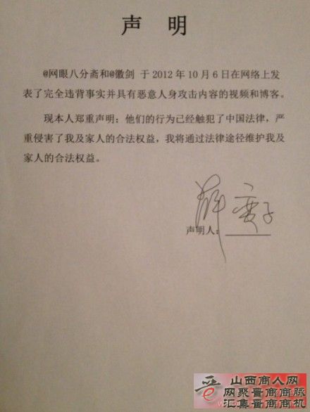 今天我在这里郑重通知@网眼八分斋 @徽剑 两位,我要起诉你们了,请将你们真实姓名、身份证号证和地址发给我吧。你们可以不顾程序正义,可以为了攻击对方而污及别人的妻子、家人,为了博出位换取人们的眼球而无所不为。祝贺你们,你们的炒作成功了!