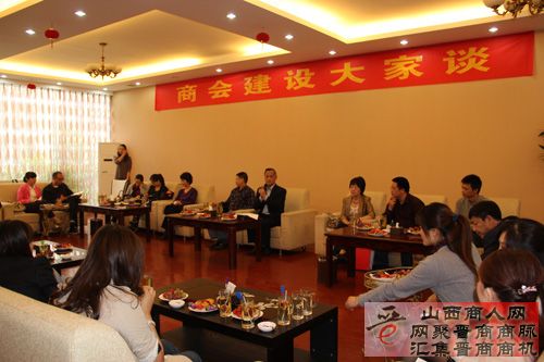 2011年9月23日,四川山西商会邀请在川异地商会共聚一堂,围绕“商会建设大家谈·向兄弟商会学习致敬”展开了热情洋溢的座谈,商会办公室主任韩晶主持,秘书长连铭对大家的到来表示诚挚的致谢意并介绍了商会换届选举两年来的工作情况。这次座谈会,各兄弟商会就平时工作中如何发展以及遇到的各种问题畅所欲言,通过这次聚会和交流,大家对商会工作有了更多的新思路,也收获了更多。