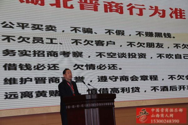 湖北晋商会秘书长霍爱文在南京市山西商会揭牌仪式大会上做了经验分享主题演讲。