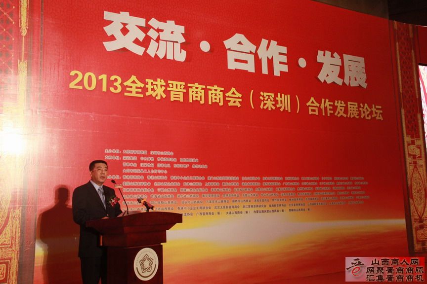 由太原新晋商联盟、深圳市山西商会主办的,以“交流、合作、发展”为主题的“2013全球晋商商会(深圳)合作发展论坛”开幕式于今天在深举行,全国30多家商会代表、山西省、深圳市领导及省内企业代表出席了此次会议。