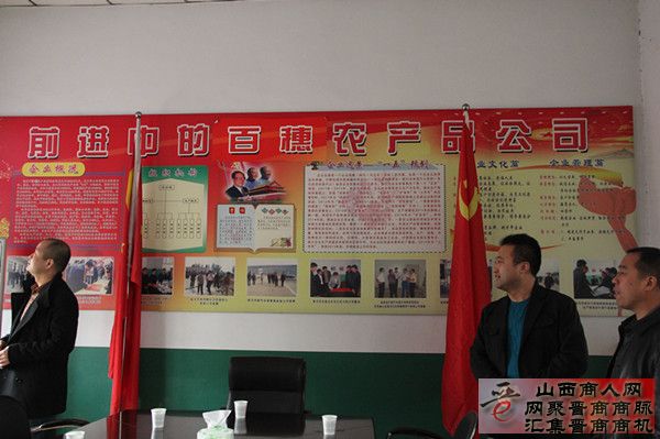 2014年3月12日,山西商人网、中国晋商俱乐部秘书长刘文斌、副秘书长李志、关小爱,临汾市新晋商投资有限公司董事长卫江峰、当代著名书画艺术家张跃华一行走访了位于临汾市侯马县的山西百穗食品有限公司生产基地。