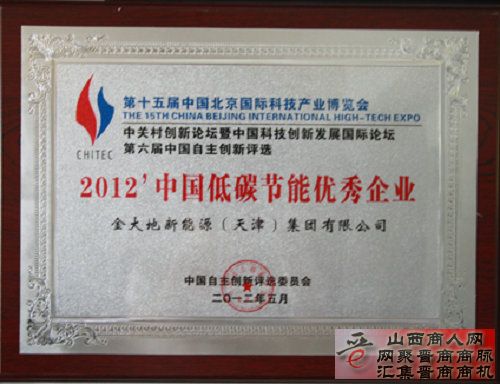 天津晋商金大地集团荣获“2012中国低碳节能优秀企业”