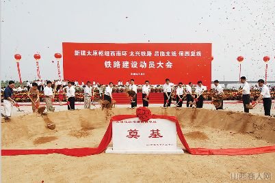 为贯彻落实中央拉动内需政策,保持全省经济平稳较快发展,昨日上午,新建太原枢纽西南环、太兴铁路、吕临支线、侯西复线铁路建设动员大会在省城举行。省 长王君,铁道部副部长卢春房,省、市领导申维辰、李小鹏、牛仁亮、李潭生、令政策、张兵生等出席并为太原枢纽西南环线开工奠基。牛仁亮主持,李小鹏讲话。
