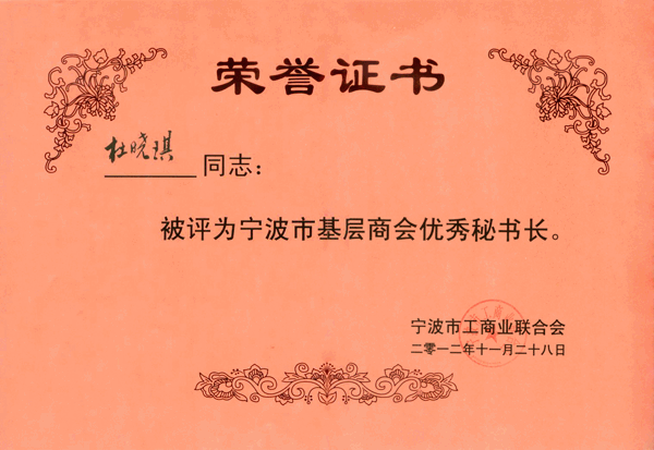 宁波市山西商会秘书长杜晓琪获得基层商会优秀秘书长奖