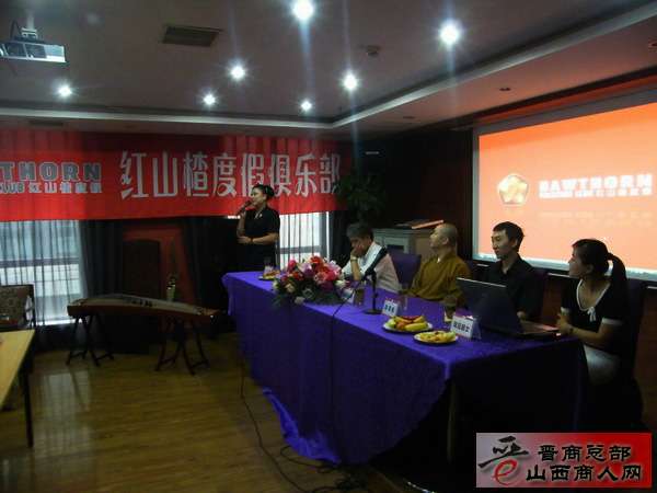 [山西商人网讯]为弘扬禅学文化,全面开展复合型主题度假产品,2010年7月9日由红山楂度假俱乐部主办的“心灵之约—红山楂度假俱乐部首届禅修研讨会”在新晋商会馆隆重召开,来自社会各界的30余位禅修爱好者参加了研讨会,中国佛学院容通法师及北京大学哲学系/宗教系教授、中国文化书院院长、三智道商国学院院长王守常先生莅临会议并发表了重要讲话,此外,本届研讨会还受到董事长的高度重视,对会议给予了重要的指示。