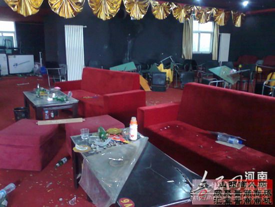 2011年8月4日,晋商特意从东北等地请来“二人转”等一批演员,开始试营业。多位现场目击者告诉记者,当晚22时许,沁阳市西万镇西万村村委会主任董小柱的弟弟董德军突然闯入九凤山休闲会馆演艺厅,抡起啤酒瓶便往舞台上狂砸,场面顿时混乱不堪。徐丁磊上前劝阻,竟被董德军打了耳光。服务员报警后,沁阳市公安局西万镇派出所副所长席国平率领两位警员迅速赶至现场,进行调查处理。