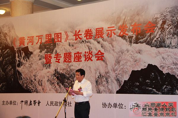(山西商人网闫变芳讯)2013年8月17日,中国画学会在全国政协礼堂召开《黄河万里图》百米长卷面世发布会暨专题座谈会。国画长卷主题创意人、中国晋商俱乐部发起机构山东省山西商会会长梁文旭、中国美协主席刘大为、中国画学会秘书长孙克等国画的主体创作者,邵大箴、尚辉、王镛、孙克、刘曦林、刘龙庭、陈醉等著名艺术评论家,以及来自全国各地的企业界、新闻界、文化艺术界等共计400余人出席活动。