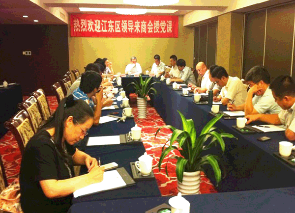 郁建平、区委组织部党代表联络科科长郑高平等领导到商会授党课。