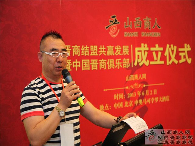 朋友们,晋商也有很多在全球影响力广泛的大家。但是几乎很少有人参与到晋商商帮的发展中。可能是缺少适合的平台。团结晋商,整合资源,这是一个难度很大的梦。为了实现这个山西梦,晋商梦,一位山西年轻人他坚持了5年,一个很清晰的思路,一个很特别的举措,成立“中国晋商俱乐部”,他在5年之后全力投入到了这个事业中,他就是晋商共赢(北京)科技服务有限公司董事长兼CEO刘文斌先生,祝贺刘总今天梦想成真,我们一起祝贺他。