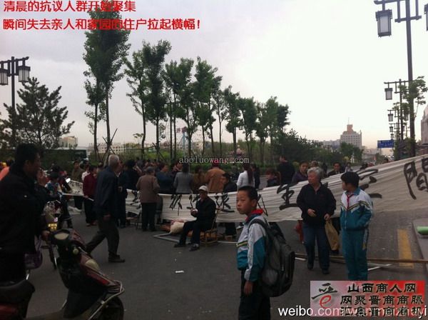 至17日晚间22点左右,被强行赶出家门的住户从凌晨到目前为止仍然在户外无家可规,由于从中午开始大同市开始断断续续下雨,居民在雨中坚持在道路中间抗议,声援市民不断送去雨衣,食品、矿泉水等,而直到中午,大同的警察、消防、特警将整条新建南路住,进行戒严,在新建南路2侧沿途有数十辆消防汽车用水枪对着人群,和全副武装的防暴大队,在新建南路的西侧的大同市图书大厦已经关闭,从2楼到到屋顶已经有武装特警架起机枪严阵以待,随时对付抗议人群!