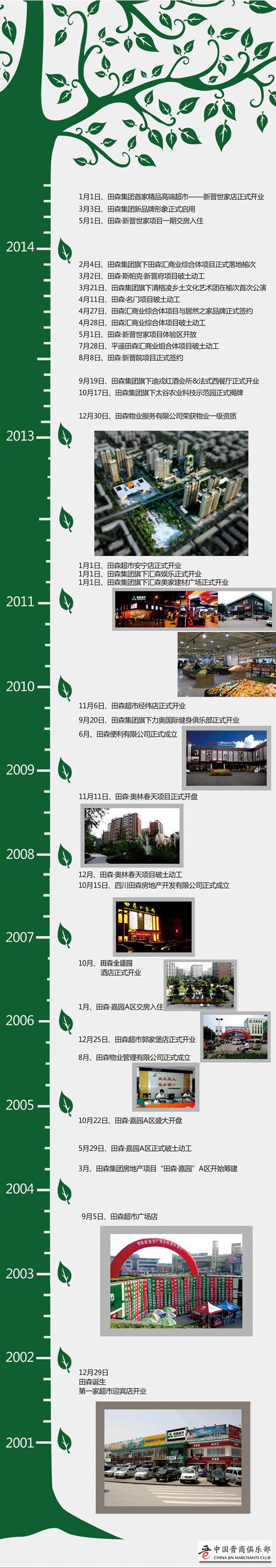 2001年,田森集团与世纪同行,以商业为主业,地产为主力,现有27家子公司遍及澳大利亚、四川、太原、晋中、忻州,拥有员工3000余人,成为集商业、地产、能源、物流、农业、餐饮、娱乐、健身于一体的企业集团。实现了多元化、跨行业的发展。