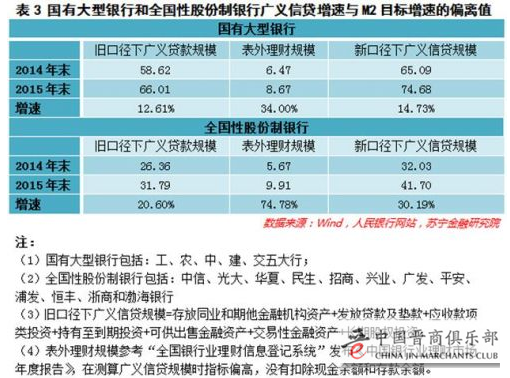 从目前估算的国有大型银行和全国性股份制银行的广义信贷规模增速看,即使加入表外理财规模,与目前M2增速相比,偏离值达标基本问题不大。