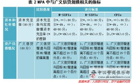 下面,首先来看广义信贷增速,MPA规定全国系统重要性机构(N-SIFIs)、区域性系统重要性机构(R-SIFIs),普通机构(CFIs)的广义信贷增速与M2目标增速的偏离值分别不得超过20%、22%、25%,否则得分为0,进而导致资产负债情况不达标。