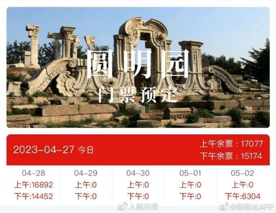 4月29日至5月2日,颐和园各时段门票均已经约满;