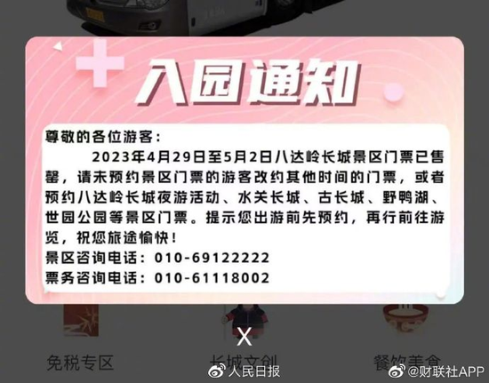同时,故宫博物院、颐和园、八达岭长城等多个热门旅游景点“五一”假期期间的门票已售罄或部分售罄,要去以下这些景点的游客请注意,别跑空。
