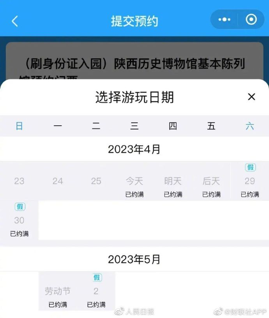 4月26日至5月3日,陕西历史博物馆门票已约满;