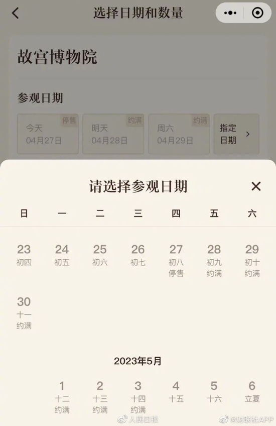 4月28日至5月3日,故宫博物院的门票已经约满;