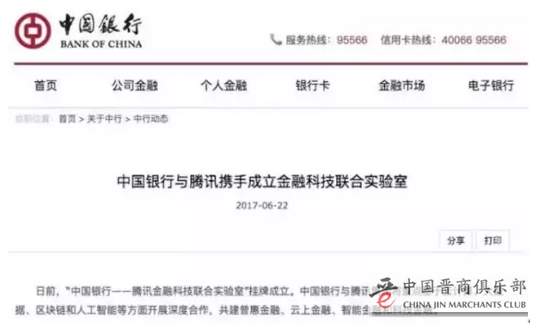 今天,中行官网公布与腾讯合作成立“中国银行——腾讯金融科技联合实验室”。