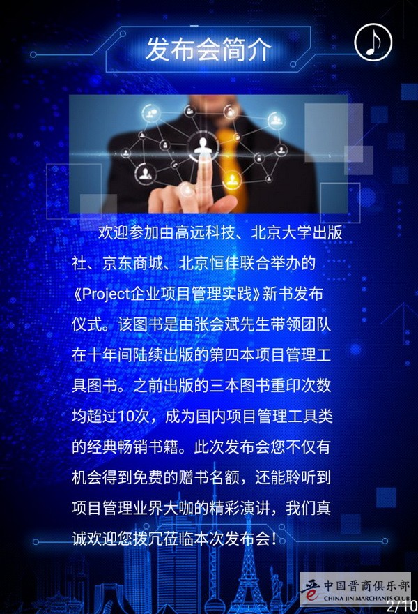 IT晋商张会斌真的很IT,这次发布的是他们出版的第四本关于“project”的书,欢迎您出席。