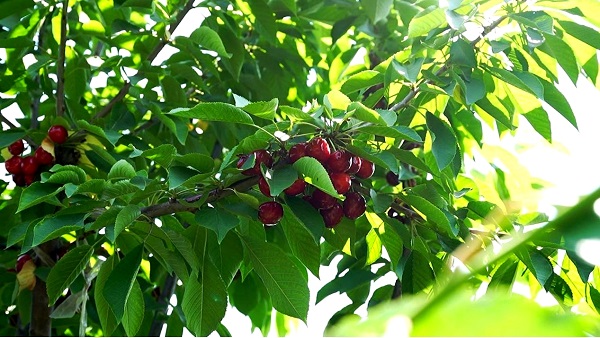 走进史劳模樱桃园,果树成行、枝叶沃若,姹紫嫣红的果实,藏匿在绿叶之间,熟透的樱桃由绿变红,如同宝石一般缀在枝头,粒粒饱满、甚是喜人。樱桃结满枝头,泛着红色的光泽,阵阵樱桃香味扑鼻而来,慕名前来的游客络绎不绝。游客一边拿出手机打卡拍照,一边品尝着甘甜的果实,体验不一样的采摘快乐。“尖草坪的樱桃体大形圆、皮薄肉厚、味美汁多、酸甜可口,品质十分独特。”来参观的游客这样说到,尖草坪优越的土壤条件和宜人的气候,十分适合樱桃的自然生长。