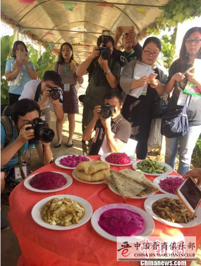 火龙果饺子、火龙果面条、凉拌火龙果皮、清炒火龙果花蕾,一道道由火龙果制成的菜肴摆满一桌,色彩鲜艳,这是山西省运城市将热带水果火龙果引进种植后推出的火龙果宴,成为当地一大特色。9月14日,40余家全国网络媒体走进运城,对当地特色农产品进行采访活动。