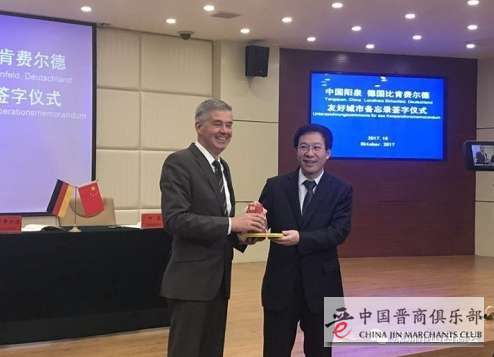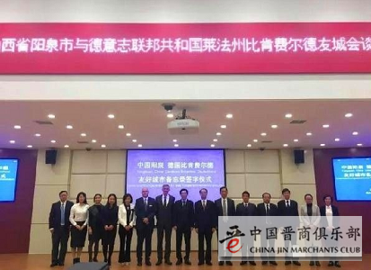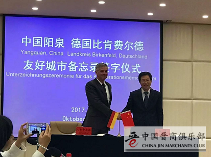 10月16日,阳泉市市长董一兵会见了德国莱法州比肯费尔德政府最高行政长官施耐德·马提亚斯博士一行,并代表市政府与比肯费尔德政府签署《友好城市合作备忘录》。双方将在平等互利的基础上,共同促进彼此间的友好交往和经贸往来,积极开展科技、文化、教育、旅游等各领域的交流合作。