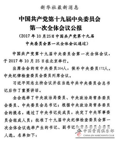 党的新一届中央领导机构诞生