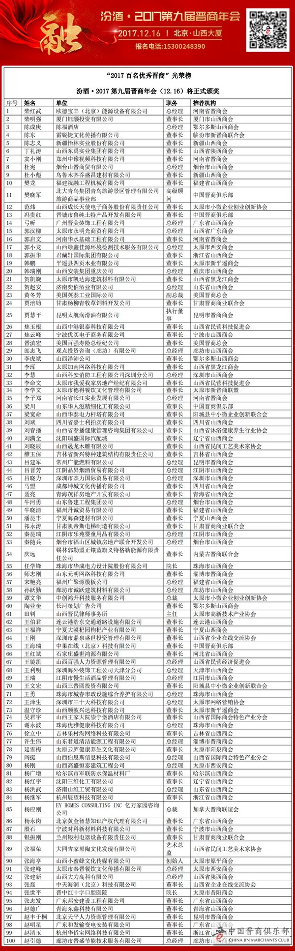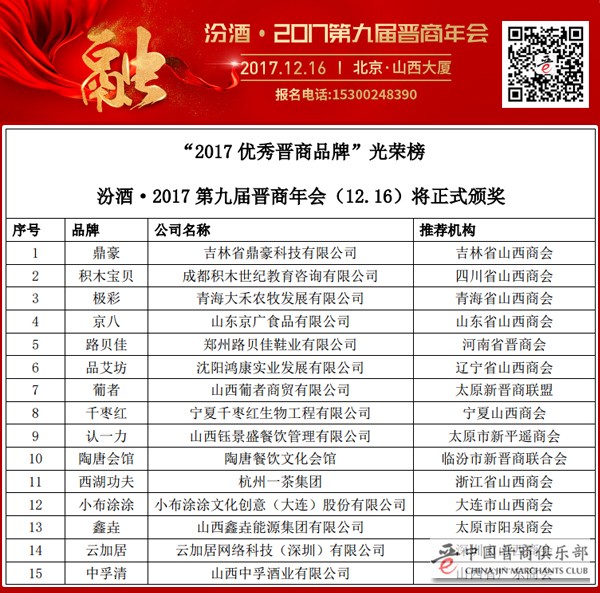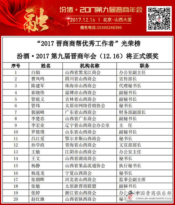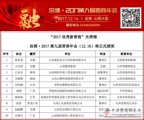 让我们一起为2017年“优秀晋商光荣版榜”的入选者加油呐喊: