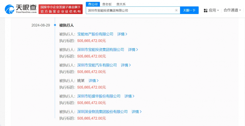 天眼查法律诉讼信息显示,近日,深圳市宝能投资集团有限公司、宝能地产股份有限公司、深圳市宝能汽车有限公司、姚振华等新增一则被执行人信息,执行标的5.05亿余元,执行法院为广东省深圳市中级人民法院。
