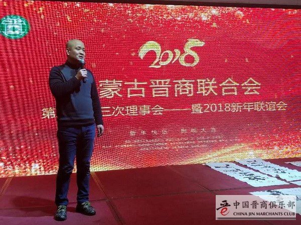 内蒙古晋商联合会会长张志强做了2017年工作报告,详细说明了商会在2018年内部管理将进行的相关工作部署,以及对2017年在北京、山西、内蒙古、浙江等地进行的项目对接做了报告。