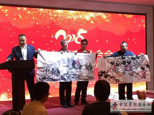 中国美协副主席韩滨、蒙汉书法家科尔沁夫向内蒙古晋商联合会赠送了国画书法作品表示祝贺。