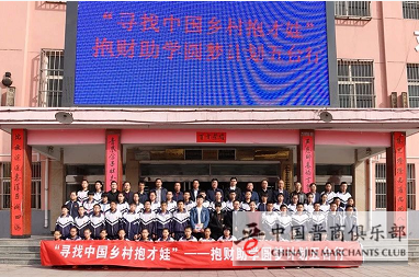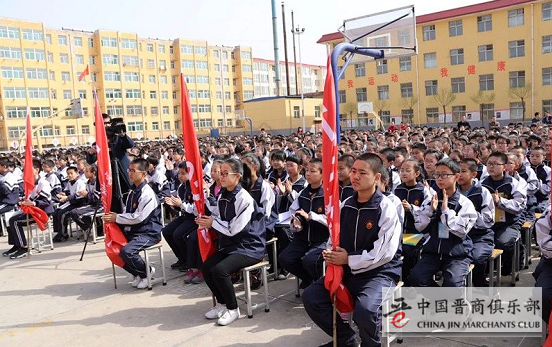 抱财网(中国晋商俱乐部2014十大优秀晋商品牌)一行人员与沱阳中学“抱才娃”集体合影