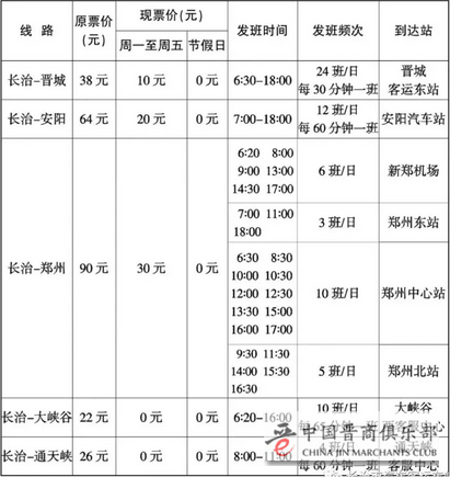 1、长治至郑州、长治至晋城线路班车由市客运西站调迁至市客运东站运营;