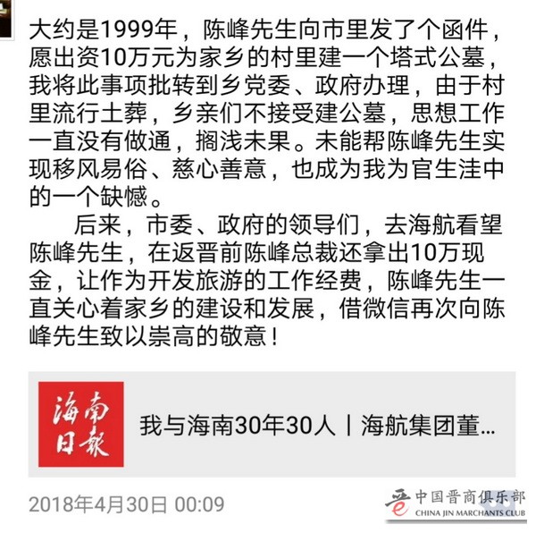 看看海南宣布为全岛自贸区后,海南日报对陈峰的正版介绍。
