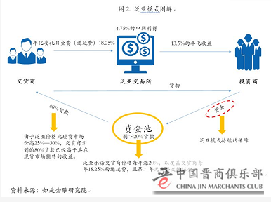 在交易所非法集资案件中,涉案规模和影响最大的是昆明泛亚有色金属交易所。昆明泛亚通过金属现货投资和贸易平台,自买自卖,操控平台价格,维持泛亚的价格比现货市场价高25%—30%,每年上涨约20%,制造交易火爆的假象,然后借此包装所谓“日金宝”等诱人的高收益产品。但实际上每年涨价20%只是为了让泛亚的价格永远高于现货市场价格,因此也永远不会有真正的买方,并没有带来实际增量资金;而交货商也因此不需补交保证金,投资者年化13.5%的日金宝理财收益,都是自己的本金或者新增投资者的本金。当新增资金放缓或者停止进入时,整个体系就会崩盘,投资者基本血本无归。泛亚模式就是利用新投资人的钱来向老投资者支付委托日金费和短期回报,制造赚钱的假象进而骗取更多的投资。2015年12月,昆明泛亚兑付危机爆发,涉及28个省份的22万人,非法集资金额总计超过430亿元,上千名泛亚投资者聚集在证监会门口集会抗议。