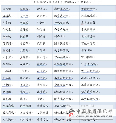 消费返利原本是一项常见的促销手段,如今却经常被包装成投资骗局。其主要特征是:通过互联网第三方平台介入商家和消费者的交易过程,许诺在平台的消费额度部分返回,或通过现金消费送等额积分等形式,诱导消费者注册会员消费和商家加盟平台回流货款。截至2017年7月,已有150余家“消费返利”传销骗局名单被央视曝光。