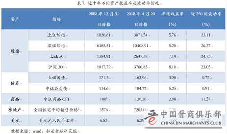 越不靠谱的投资品收益越是高的惊人,如中晋系号称有10%-25%甚至40%的高收益,远超过市场平均收益率。然而,综观大类资产2008年12月31日至今近10年以来的收益率,可以发现其平均年化收益率均在10%以下,收益率最高的房地产平均年化收益率为7.79%。以股票为例,上证综指和深证成指近10年的年化收益率均在5%-6%之间,包含上证市场规模最大、流动性最好的蓝筹股的上证50年化收益率也仅为7.19%。但股票资产近250周波动率均在20%以上,风险远远高于债券、商品等资产。而风险最低的债券年化收益率均较低,上证国债为3.28%,中证公司债为5.25%。由此可见,高收益率低风险是一个巨大的投资骗局,在当前各类资产市场回报率较低的情况下,可以说承诺超过10%收益的短期产品基本上都是骗局。