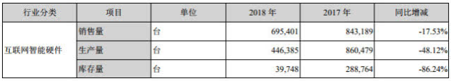 但2018年财报显示,暴风TV其销售量、生产量较2017年均有不同程度的下降,幅度分别约为17%、48%。