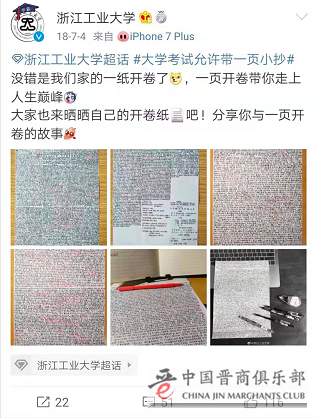 去年,浙江工业大学考试允许带一页“小抄”的模式就火了!