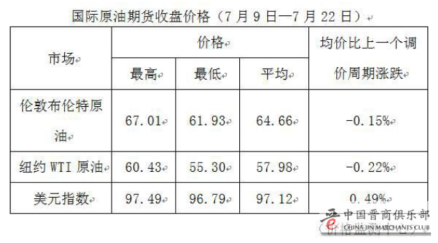 据国家发改委价格监测中心监测,本轮成品油调价周期内(7月9日—7月22日),国际油价先升后降,平均来看,伦敦布伦特、纽约WTI油价比上轮调价周期微降0.19%。按现行国内成品油价格机制测算,调价金额每吨不足50元,本次汽、柴油价格不作调整,未调金额纳入下次调价时累加或冲抵。