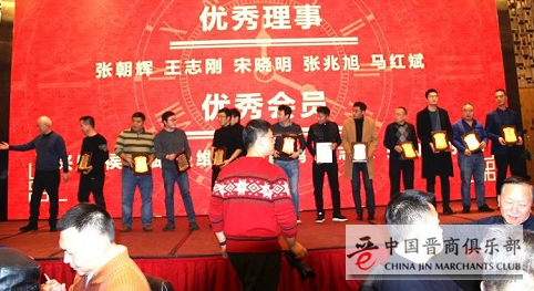 名誉会长刘明建为优秀理事张朝辉、王志刚、宋晓明、张兆旭、马红斌,优秀会员马兴乐、侯海斌、史维杰、刘彦鹏、张志宏、张勤勤、 张翔颁发奖牌。