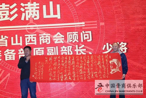 团拜会上,顾问彭满山向商会赠送了书法作品。