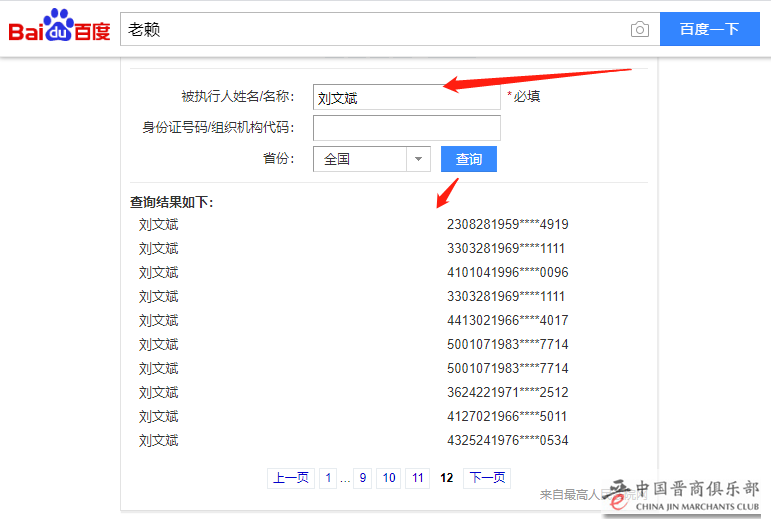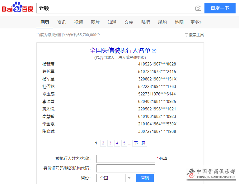 核心提示:在百度上输入老赖,会出来下面界面:看看自己同名同姓的老赖有多少吧,例如在被执行人姓名中输入刘文斌,可以查询到120位叫刘文斌的老赖。