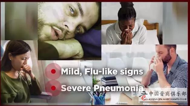 感染者症状不一,部分仅有轻微感冒症状,其余患者则有严重的肺炎症状:
