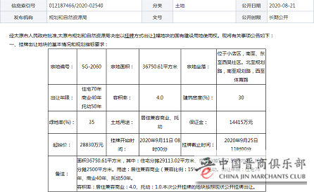 起始价为2.883亿元,起始地价为523万元/亩,起始楼板价为1961元/㎡。(供应楼板价和建筑面积根据公示数据得出。)