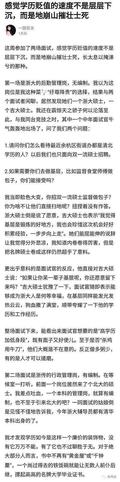 今天的大学生其实比我们那个时候大学生、大专生、中专生的总和还要多得多,他们中很多人其实承载了当时中专生等在竞争序列中更弱群体的艰辛。”