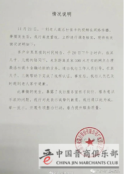 说明中提到,相关视频内容发生于20日14时许,该老人在其儿子、儿媳的陪同下,来到离家300米左右的网点办理激活社保卡金融功能的业务,由该行工作人员引导。老人在其儿子、儿媳帮助下完成了视频认证。