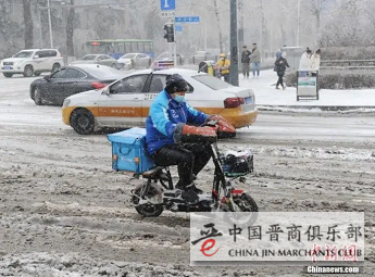 资料图:外卖小哥冒雪送餐。中新社记者 刘栋 摄