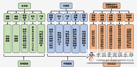 一是职住平衡指数平均达到0.41,即典型商圈平均可满足30分钟通勤圈内41%适龄就业人口的就业需求,30分钟通勤圈内其他分散就业岗位可满足10%以上适龄就业人口就业需求,即50%以上的适龄就业人口可保障30分钟通勤。